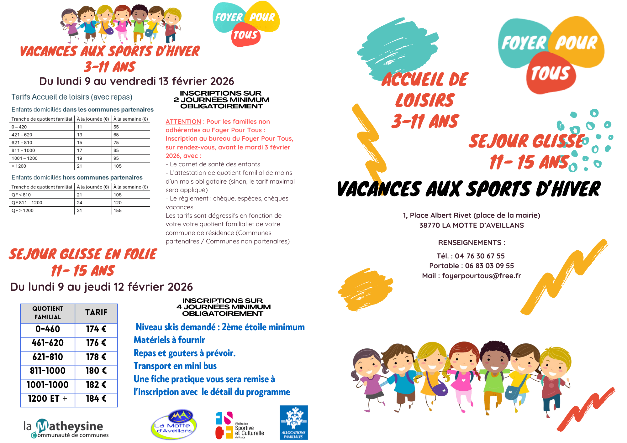 TARIFS ET CONDITIONS ALSH +SEJOUR GLISSE 2026